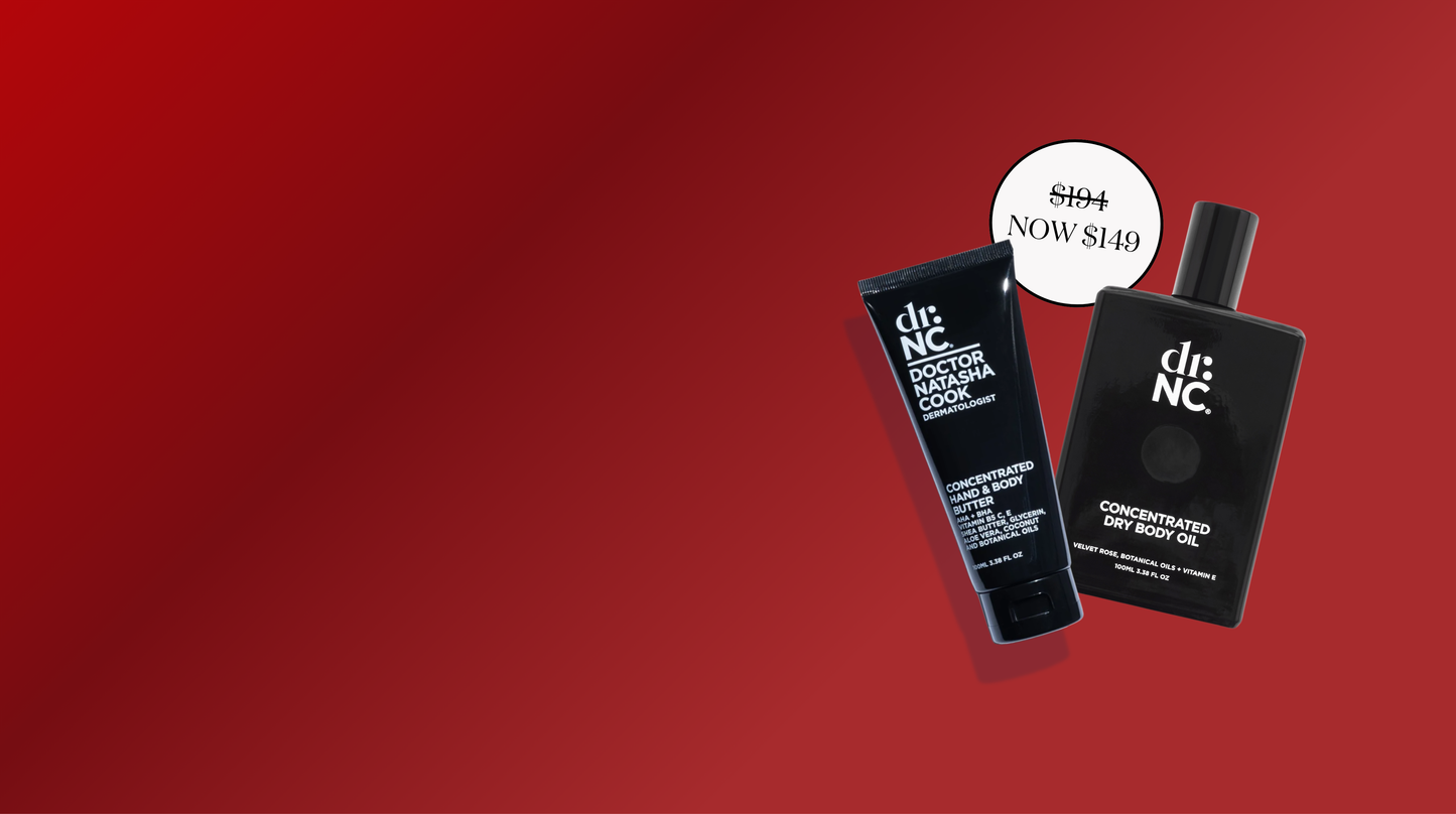 drNC is founded and formulated by board-certified Dr Natasha Cook. A top-to-toe solution, that helps to reprogram your skin’s destiny, drNC prioritises performance while boosting longevity with clinically proven Vitamin B3.