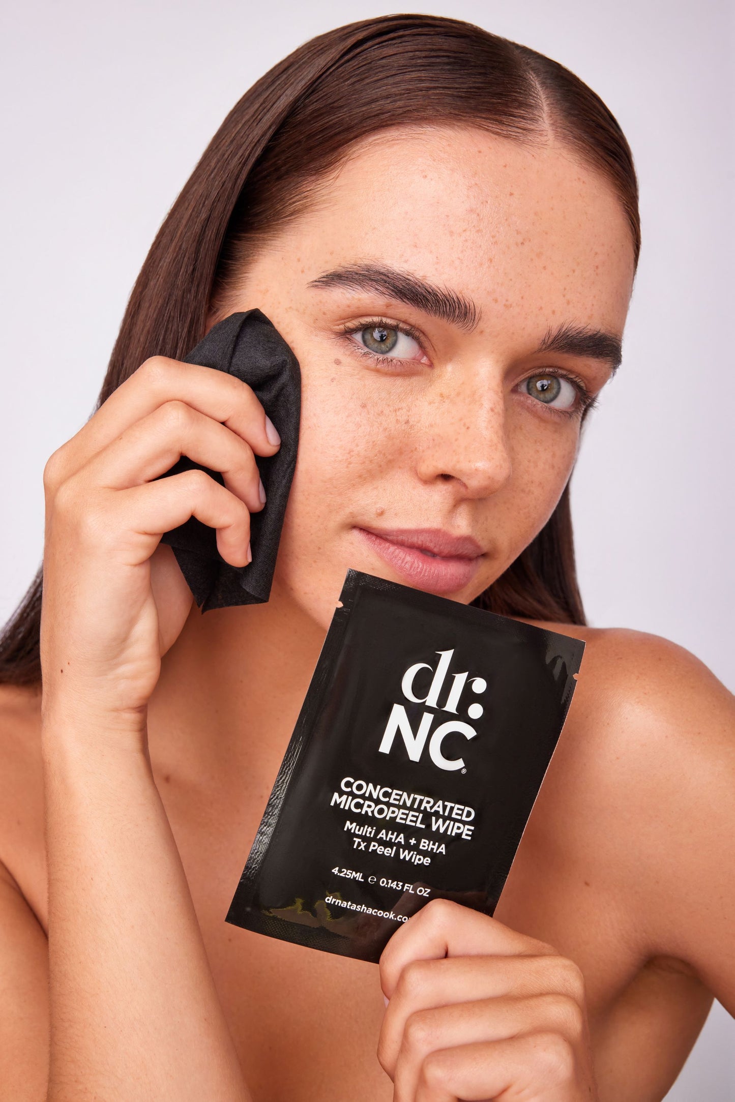 “I created this skin-refining peel as a convenient, at-home alternative to a professional chemical peel at the clinic. It’s a safe but effective multi AHA/BHA formula in an easy-to-use wipe that you can swipe over your face, neck, décolletage (and body) when you want to prep your skin to look its radiant best. I always take a few with me when I travel.”